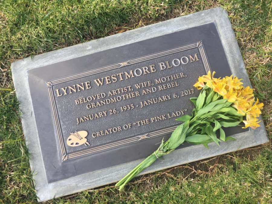 On Sunday, Jan. 6, 2019 — the 2-year anniversary of her death — Lynne Westmore Bloom's son Stephen Seemayer and her daughter-in-law Pamela Wilson visited her resting place at Oakwood Memorial Park in Chatsworth, CA, leaving a handful of yellow lilies like the ones the Pink Lady clasped in her hand as she frolicked on the cliffside in Malibu more than 50 years ago.